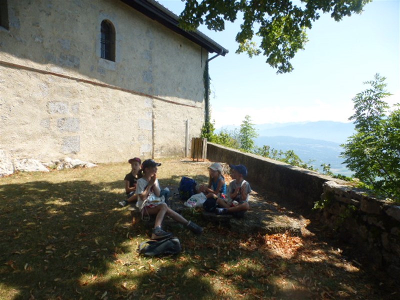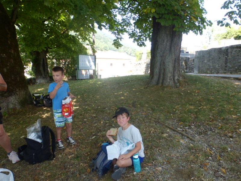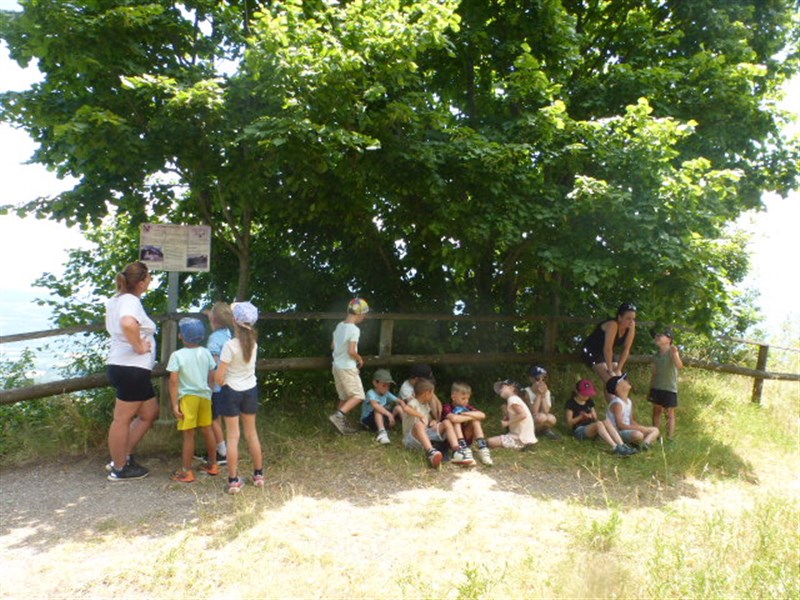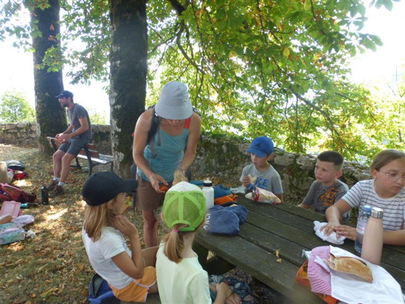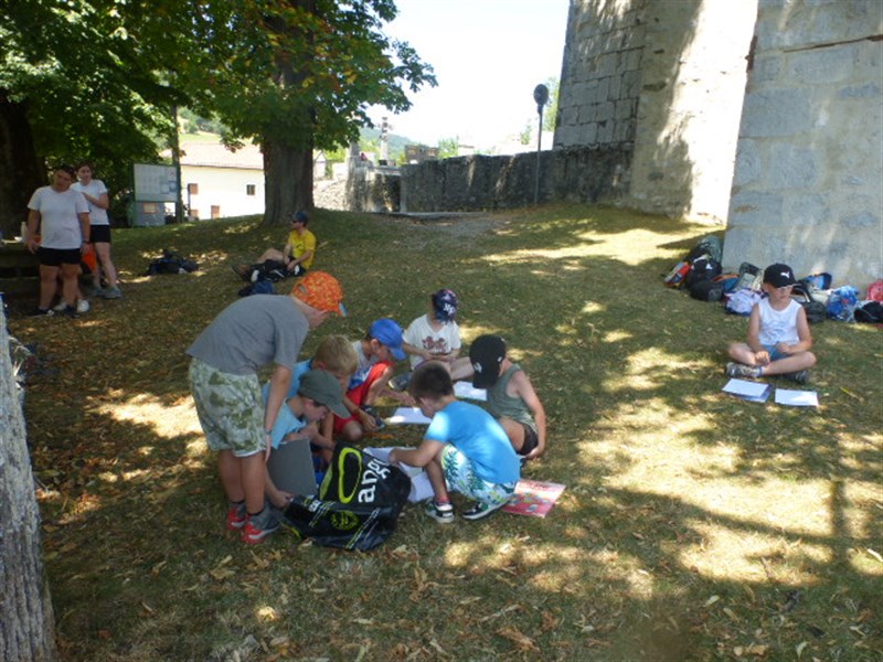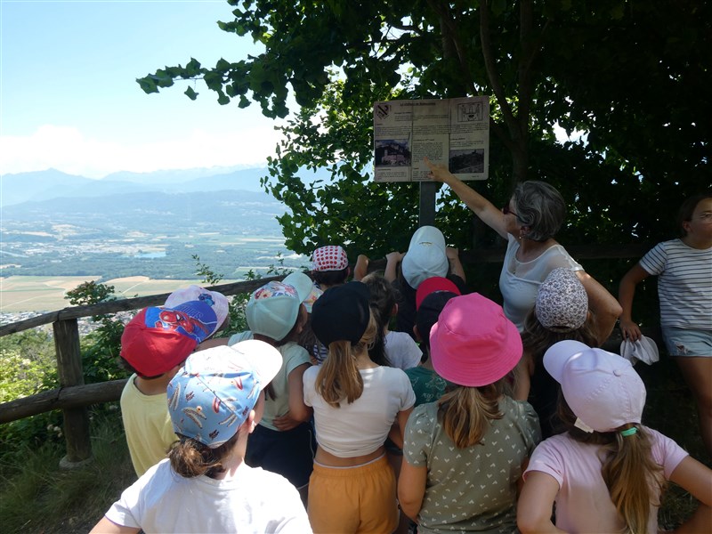 L'autre groupe allait à l'endroit où se trouvait le château avant. On a pu voir le trou de l'ancien puits, des ruines des remparts, la table d'orientation et on a lu le panneau explicatif.