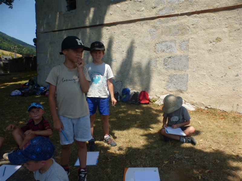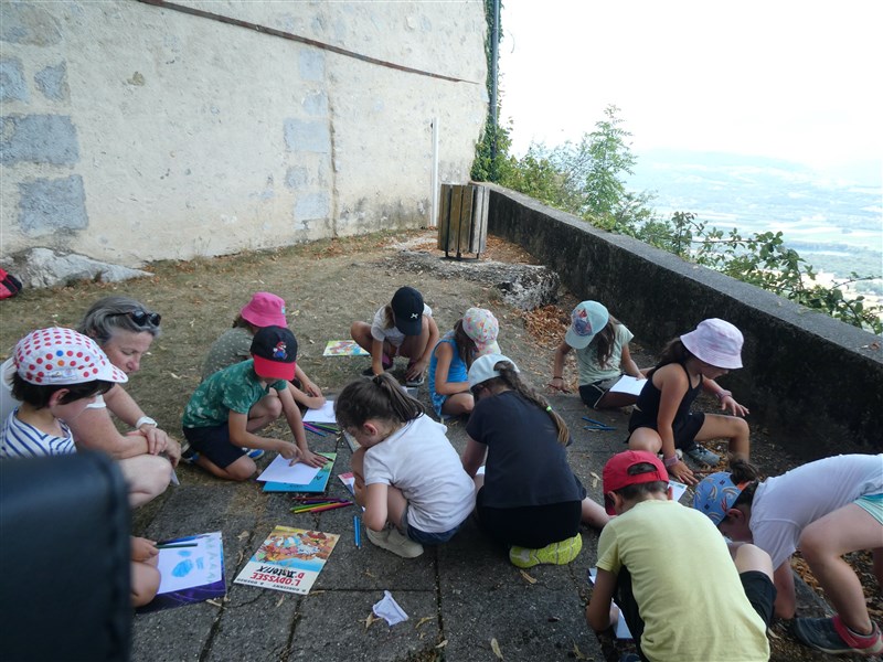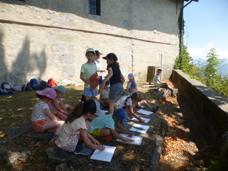 Après, on a fait 2 groupes. Un groupe dessinait le paysage avec la vue sur Pontcharra, la carrière, les lacs des Lônes et Belledonne.
