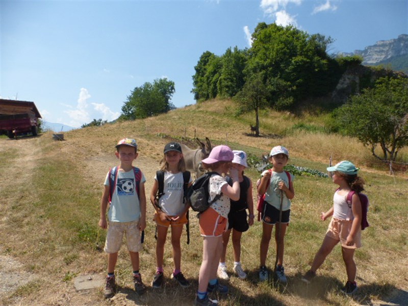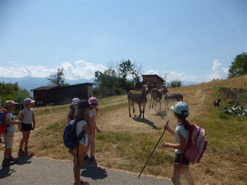 A la fin de la promenade, le chemin était pentu et caillouteux. A l'arrivée, il y avait des ânes et le papa protégeait ses petits en brayant.