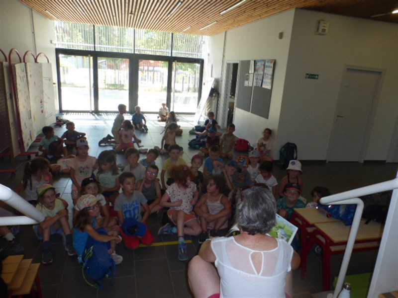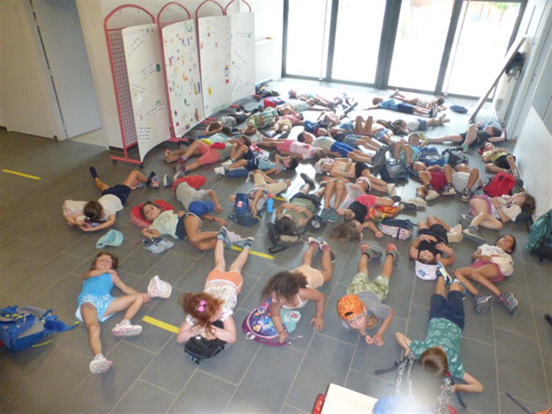 De retour à l'école, on s'est allongés sur le carrelage, c'était frais et ça faisait du bien. On a fait une petite séance de relaxation avec Madame Russu et Madame Le Gall, nous a lu l'histoire de la princesse, du chevalier et du dragon.