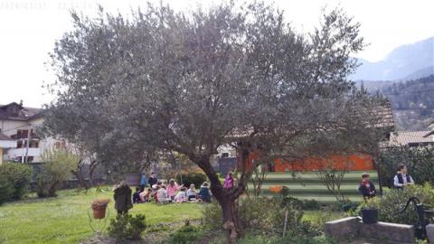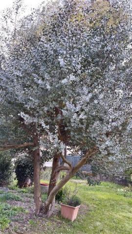 L'olivier a des petites pousses sur son tronc. Les feuilles sont toujours vert-kaki. Il a plus de feuilles et il a grandi. il y a beaucoup de feuilles par terre. L'arbre se régénère, il renouvelle ses feuilles.