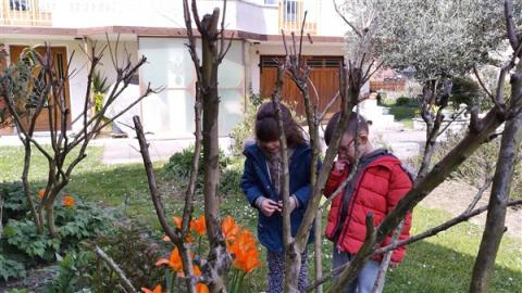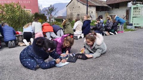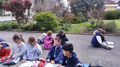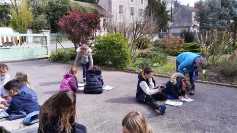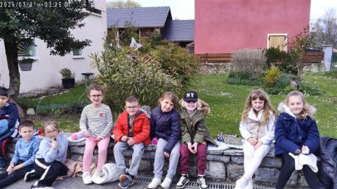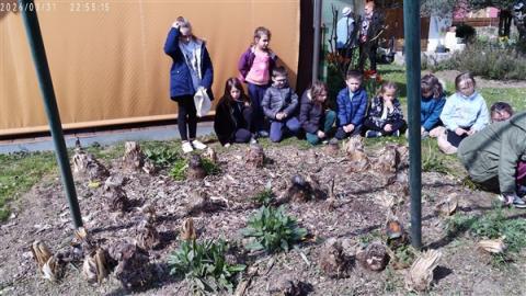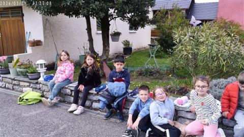 Jeudi 2 avril, nous sommes allés voir le jardin de mamie Dédée. Jocelyne et Annick nous ont accompagnés. Ce sont les dames qui vont nous accompagner à Crupies. Elles sont très gentilles. Ce sont les amies de beaucoup de grands-parents d'élèves de la classe.
