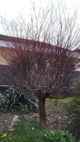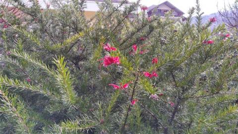 L'arbre à crevettes a bien grandi et a le bout de ses branches rouge.