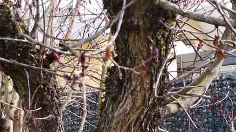 L'arbre à perruques est plein de bourgeons et il a de toutes petites feuilles pourpres. Il n' a pas de perruques.