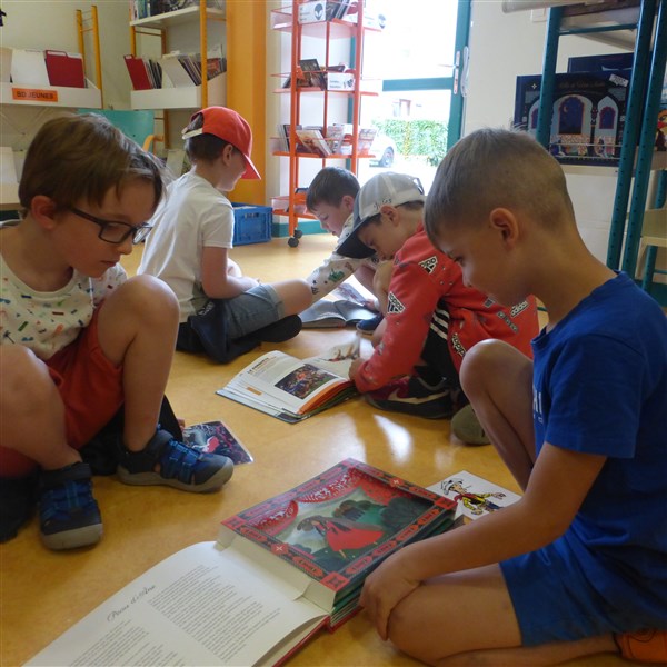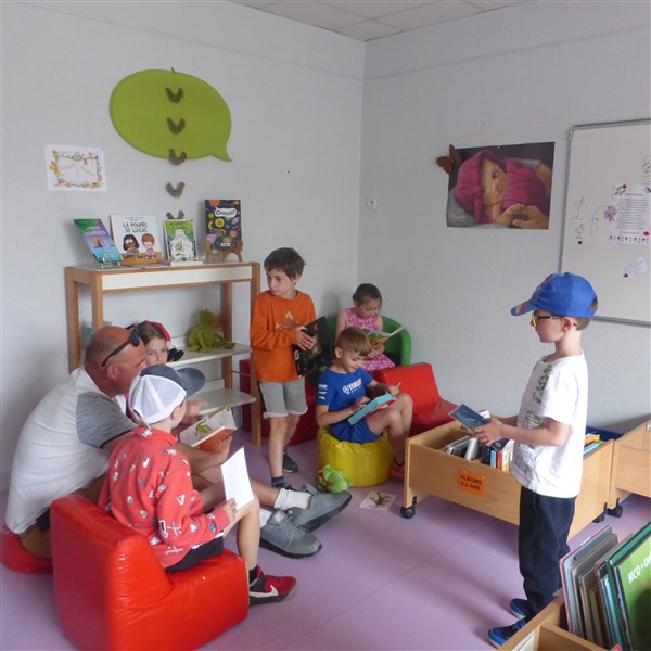 On est encore un peu restés à la bibliothèque pour lire des livres ou jouer au jeu des histoires.